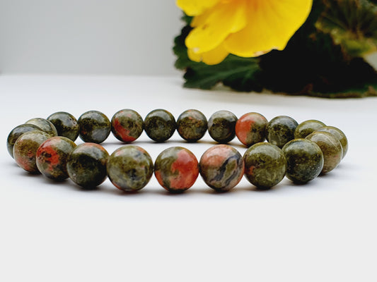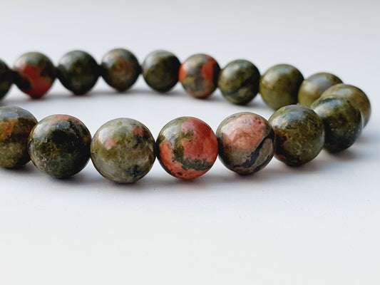 Unakite natural stone jewellery set, bracelet and earrings, 8mm beaded, Silver plated, Handmade in Uk