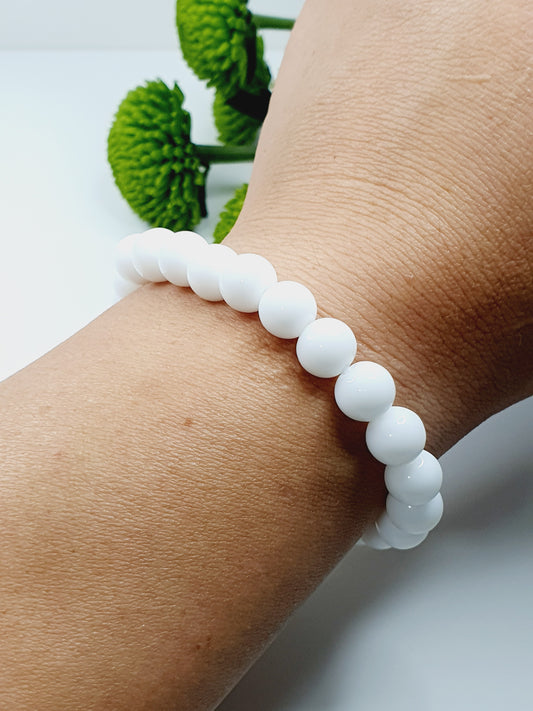 White Onyx 7 Chakra bracelet from natural stone 8mm beaded, gift box jewellery, gemstone, Uk