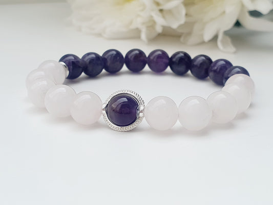 Rose Quartz and Amethyst natural stone bracelet 8mm bead