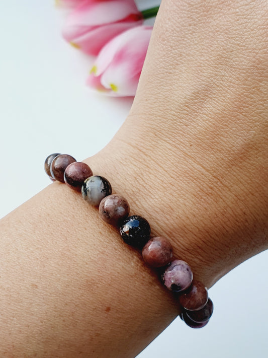 Rhodonite bracelet from natural stone 8mm beaded, gift box jewellery