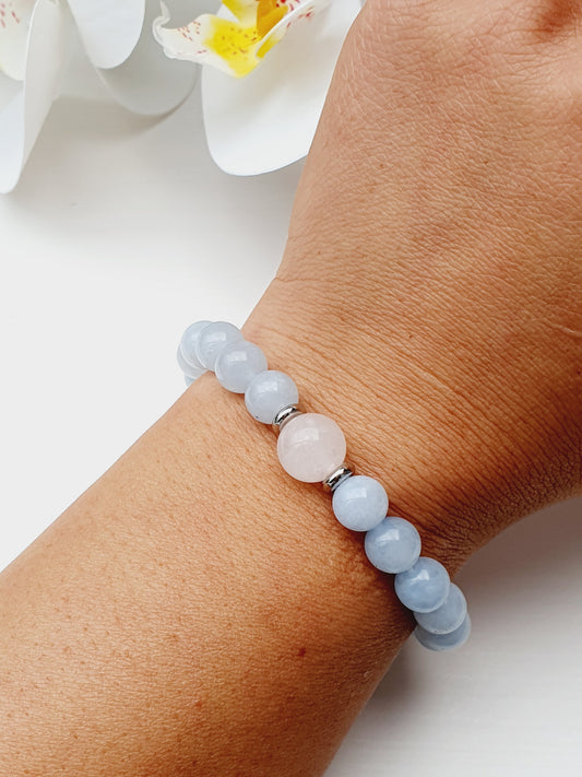 Rose quartz and Aquamarine natural stone bracelet