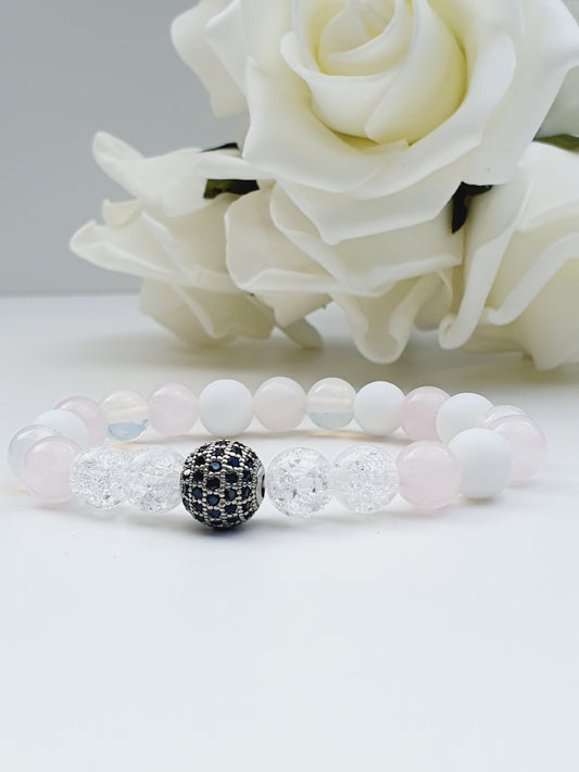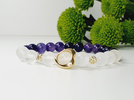 Selenite and Amethyst natural stone bracelet 8mm bead