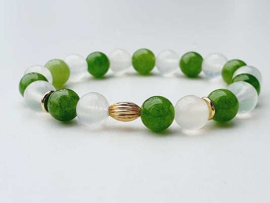 Peridot and Selenite Bracelet from Natural Stone 8mm Beaded, Gift Box Jewellery