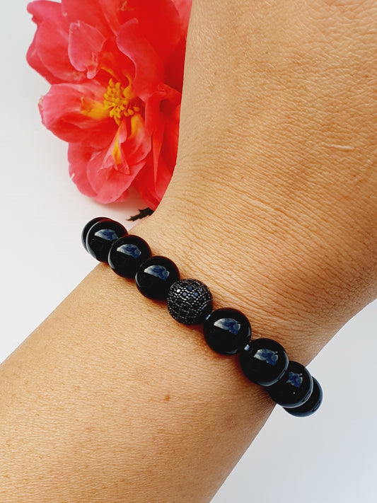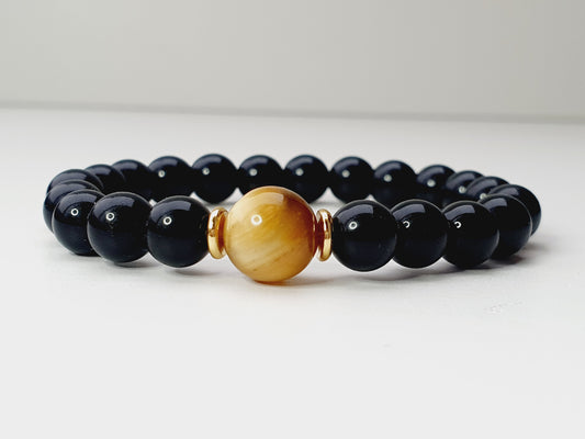 Black Onyx and Tiger eye bracelet from natural stone, gift box jewellery, gemstone, handmade in Uk