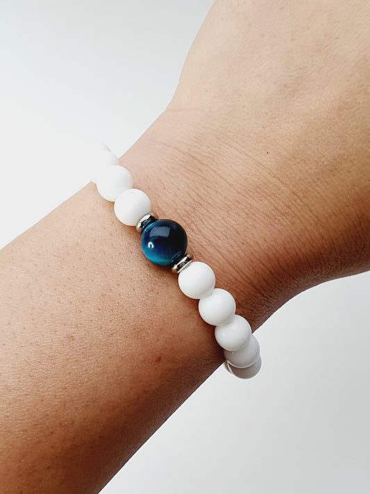 White Onyx and Tiger eye bracelet from natural stone, gift box jewellery, gemstone, handmade in Uk