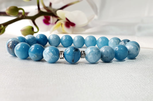 Larimar Bracelet Natural Stone 8mm Beaded, Gift Box Jewellery