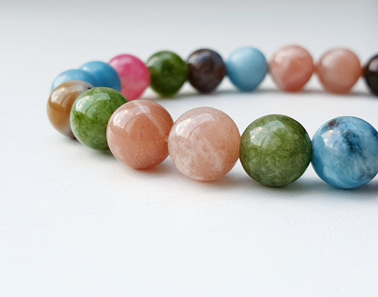 Bracelet From Natural Stone Larimar Tourmaline Sunstone Agate Emerald 8mm Beaded, Gift Box Jewellery
