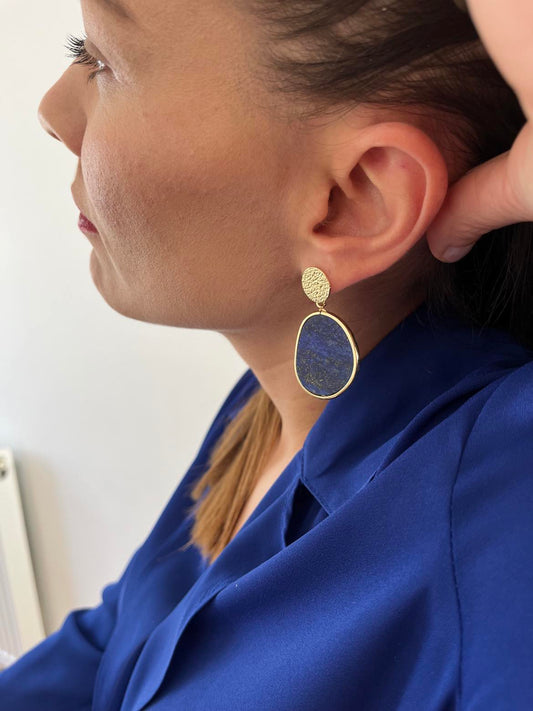 Earrings from natural stone Obsidian, 18k gold plated, gift box jewellery, Handmade in Uk