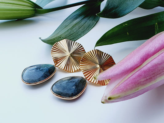 Earrings from natural stone Labradorite, 18k gold plated, gift box jewellery, Handmade in Uk