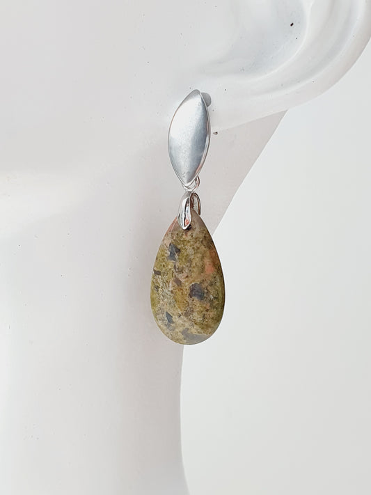 Earrings From Natural Stone Unakite, Silver Plated, Gift Box Jewellery, Handmade in Uk