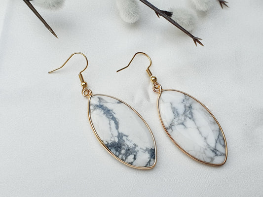 Earrings from natural stone Howlite, 18k gold plated, gift box jewellery, Handmade in Uk