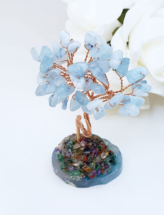 Tree of wisdom made from natural stone aquamarine