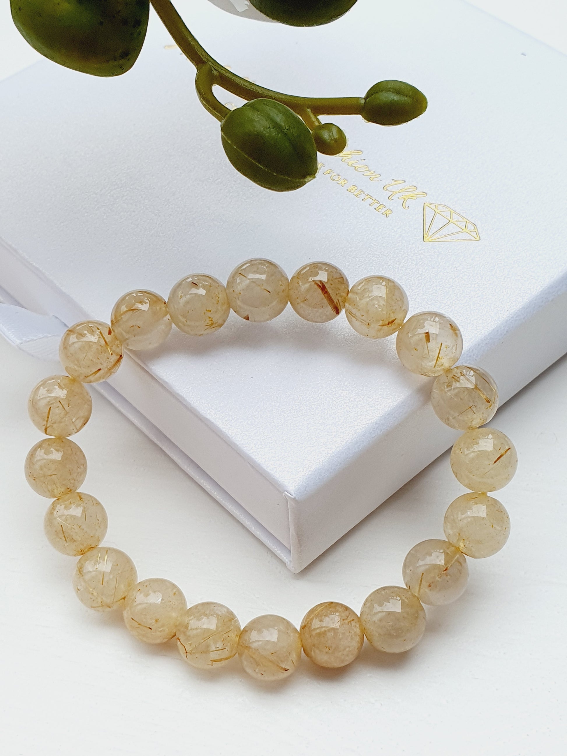 Rutilated Quartz natural gemstone bracelet 8mm bead